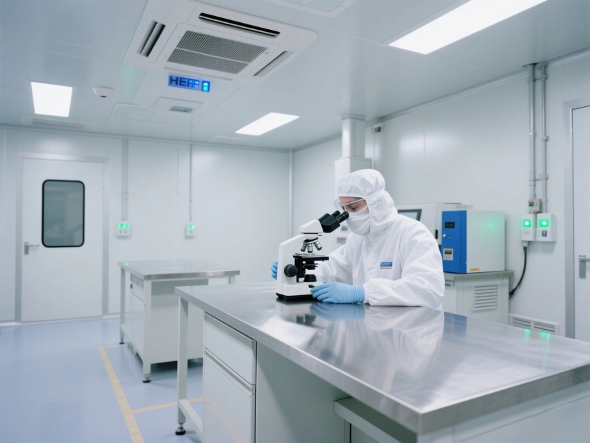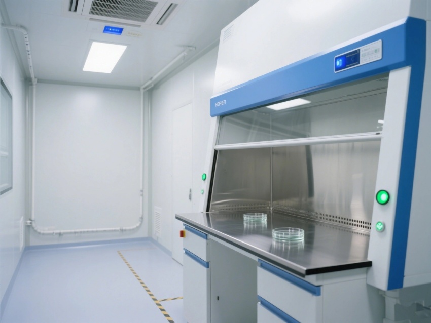 操作區(qū)配備不銹鋼生物安全柜、負壓隔離艙等專業(yè)設備,透明觀察窗與電子顯示屏實時監(jiān)控溫濕度(控制在22±2℃)及壓差(維持10Pa正壓)。走廊設置風淋室與傳遞窗,確保物料與人員進出的潔凈過渡,全方位契合醫(yī)療器械GMP生產(chǎn)規(guī)范。