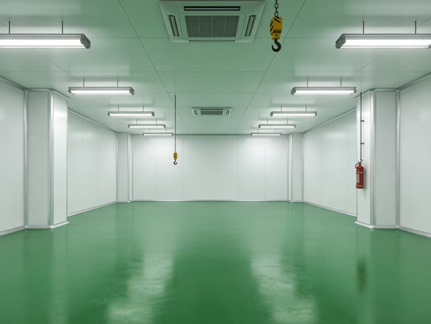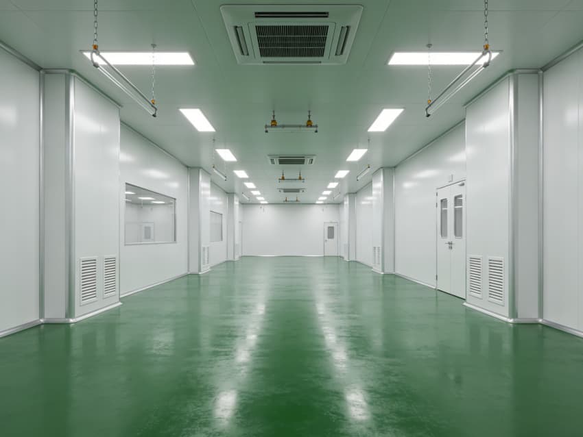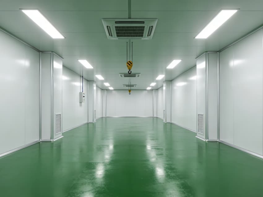 航天航空零件生產(chǎn)車(chē)間內(nèi)部施工以“超高精度、極致潔凈、抗擾穩(wěn)定”為核心,采用系列尖端工藝技術(shù),適配精密零件加工的嚴(yán)苛要求,同時(shí)實(shí)現(xiàn)地面綠色、墻壁白色的統(tǒng)一風(fēng)格。地面采用綠色防靜電耐磨環(huán)氧自流平工藝,經(jīng)基層拋丸強(qiáng)化、高滲透界面劑處理、環(huán)氧砂漿精準(zhǔn)找平、自流平罩面固化四道核心工序,表面平整度誤差控制在0.5mm/m內(nèi),防靜電性能達(dá)10?-10?Ω,抗壓強(qiáng)度超C40,可耐受精密設(shè)備碾壓與切削液侵蝕。