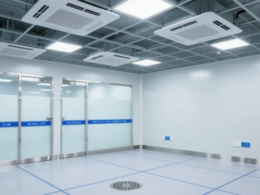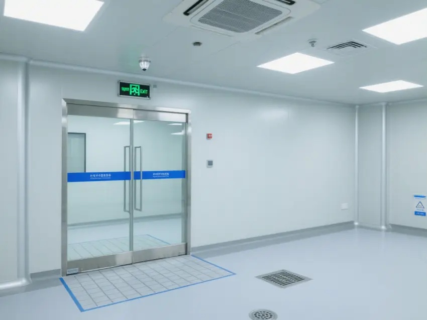 車間的天花板上安裝了多個方形的照明燈,提供充足的光線,同時還有通風(fēng)設(shè)備,確保空氣流通,保持車間內(nèi)的空氣潔凈度達(dá)到萬級標(biāo)準(zhǔn)。墻壁上有一些玻璃窗戶和門,便于觀察內(nèi)部情況。