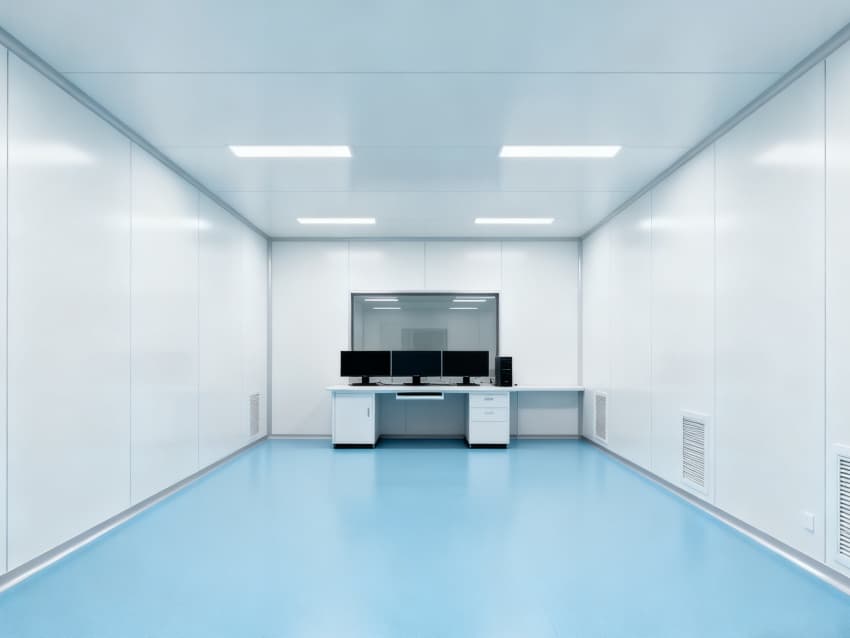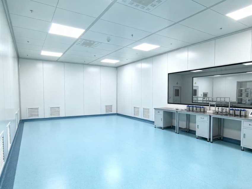 車間環(huán)境控制優(yōu)勢顯著:地面采用淺藍色防靜電環(huán)氧材質(zhì),有效規(guī)避靜電對量子元件的干擾;四周白色抗菌墻面經(jīng)特殊涂層處理,粉塵附著率低于0.1%,配合全密封吊頂設(shè)計,可維持千級潔凈度,滿足量子器件對微環(huán)境的極高要求。?