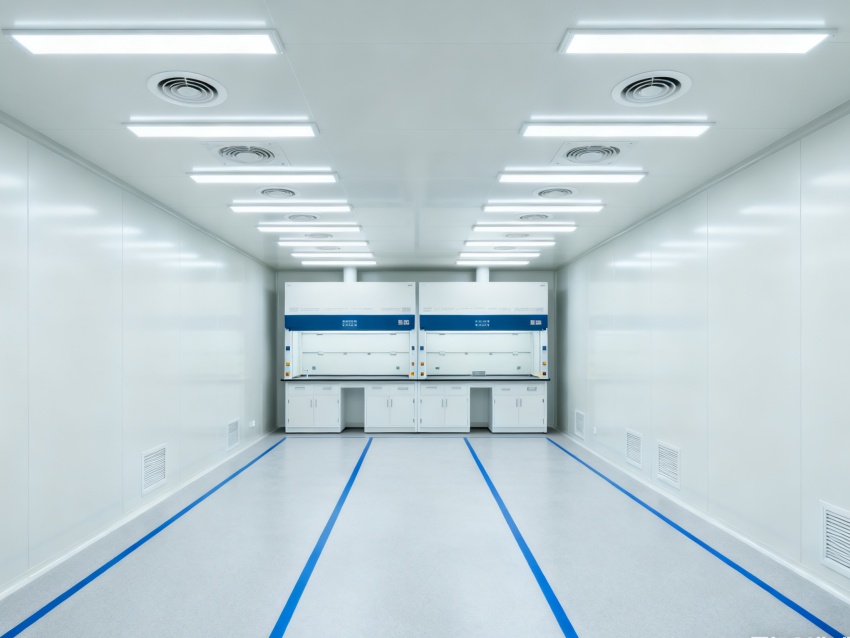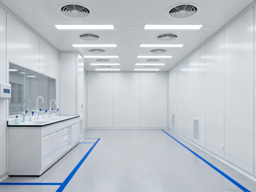 實(shí)驗(yàn)室潔凈度嚴(yán)格遵循萬級標(biāo)準(zhǔn)(ISO8級),每立方米空氣中≥0.5μm微粒數(shù)≤352000個,采用初效-中效-高效三級空氣過濾系統(tǒng),配合垂直層流送風(fēng)設(shè)計,實(shí)現(xiàn)每小時20-25次空氣置換。室內(nèi)墻面采用耐腐蝕潔凈彩鋼板,地面為PVC無菌卷材,所有接縫做密封處理;溫度控制在22±2℃、相對濕度50±5%RH,部分區(qū)域維持5-8Pa負(fù)壓,有效防止交叉污染,符合生物安全實(shí)驗(yàn)室建設(shè)規(guī)范。