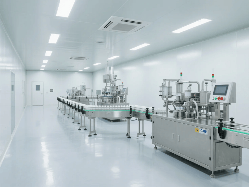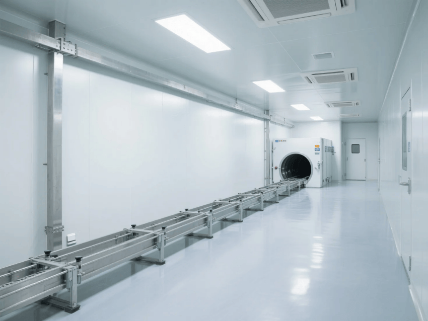 本工程嚴(yán)格遵循GMP及ISO14644-1Class8標(biāo)準(zhǔn),專為無(wú)菌制劑灌裝生產(chǎn)打造高標(biāo)準(zhǔn)潔凈環(huán)境。整體采用醫(yī)療級(jí)白色抗菌彩鋼板與淺灰環(huán)氧自流平地坪的潔凈配色方案,營(yíng)造安全、專業(yè)的無(wú)菌生產(chǎn)氛圍。