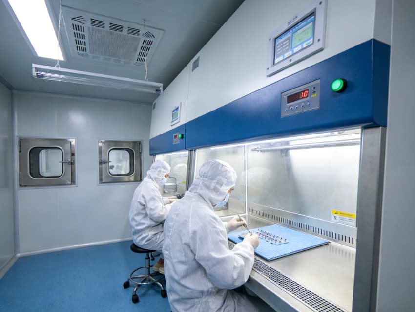 白色墻面采用食品級無菌抗菌涂層,推行無縫拼接與高精度找直工藝,陰陽角采用R50圓弧倒角設(shè)計,徹底消除清潔死角,潔凈度穩(wěn)定達到Class 7級以上標準。廠房科學劃分無菌裝配區(qū)、生物安全區(qū)、精密檢測區(qū)等核心區(qū)域,各區(qū)域配備獨立層流凈化與負壓隔離系統(tǒng),裝配區(qū)預留恒溫恒濕精準調(diào)控接口,檢測區(qū)設(shè)置無菌觀察窗口與專用物料傳遞通道,全方位保障生產(chǎn)全流程的生物安全性與合規(guī)性,筑牢植入性醫(yī)療器械高品質(zhì)生產(chǎn)根基。